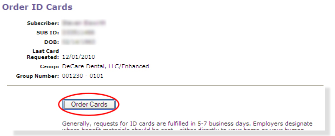 Note: You can also access the Order ID Cards feature from the Coverage Summary screen by clicking the Order link in the ID Cards column.