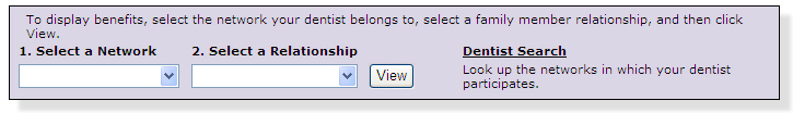 From the Select a Relationship drop-down list, choose either Subscriber, Spouse, or Child, and then click View. The Summary of Dental Benefits will display.