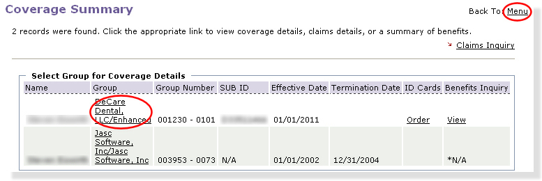 To return to the Coverage Summary page, click the Coverage Summary link (shown above) toward the upper right corner of the Coverage Detail page.
